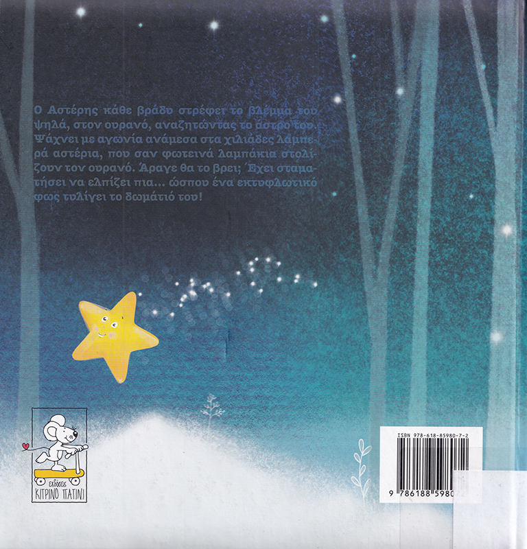 Ο Αστέρης κάθε βράδυ στρέφει το βλέμμα του ψηλά, στον ουρανό, αναζητώντας το άστρο του. Ψάχνει με αγωνία ανάμεσα στα χιλιάδες λαμπερά αστέρια, που σαν φωτεινά λαμπάκια στολίζουν τον ουρανό. Άραγε θα το βρει;