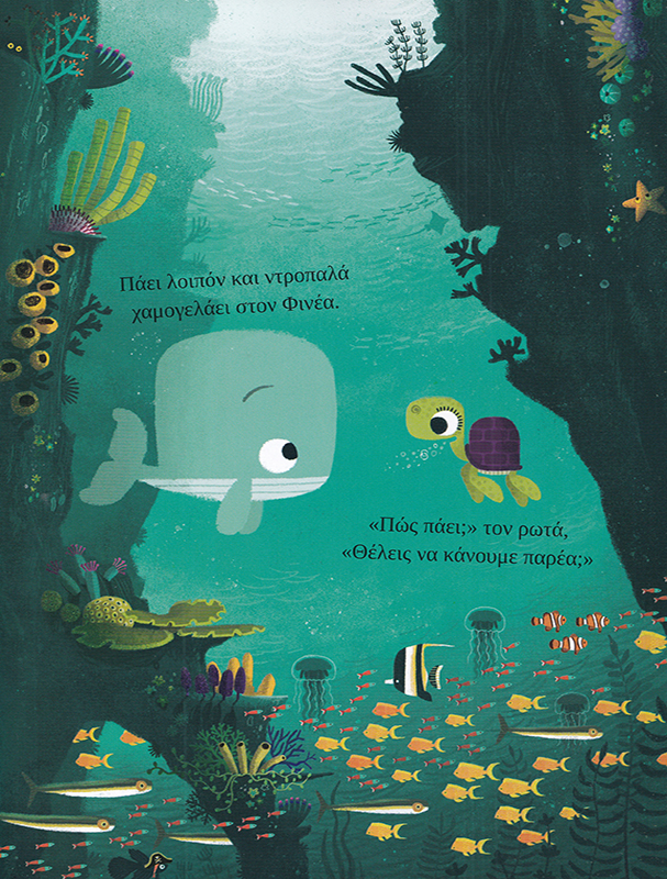 Η κριτική μου : Μου άρεσε πάρα πολύ το βιβλίο με τη μικρή φάλαινα γιατί ήταν πολύ γλυκιά και γενναία! Έκανε φίλους δελφίνια, ψαράκια και ακόμα κι έναν καρχαρία που τελικά δεν ήταν κακός. Όταν διάβαζα, ένιωθα σαν να κολυμπούσα κι εγώ μαζί της στη θάλασσα. Οι εικόνες ήταν πανέμορφες και γεμάτες χρώματα, και ήθελα να μη τελειώσει ποτέ η ιστορία