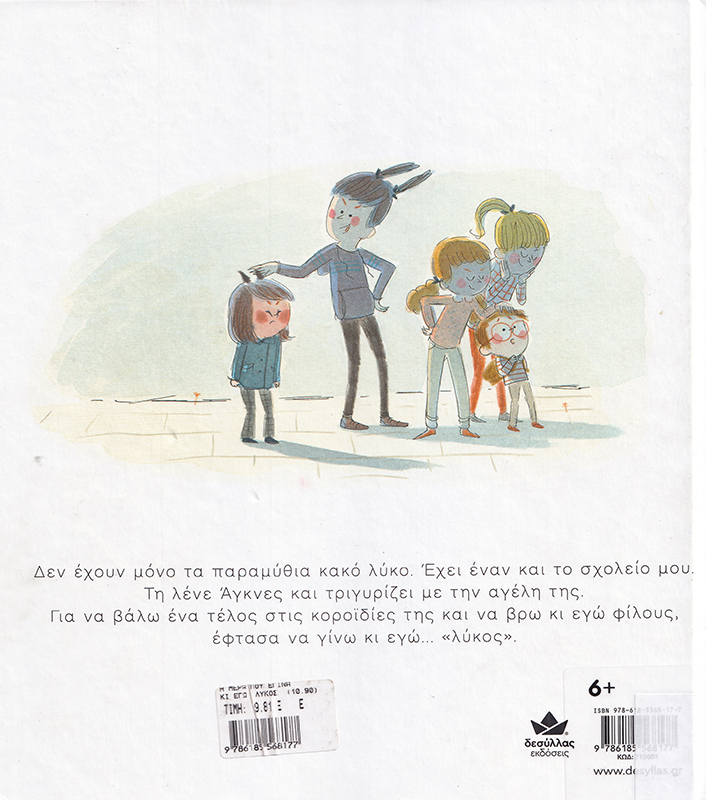 Δεν έχουν μόνο τα παραμύθια κακό λύκο. Έχει έναν και το σχολείο μου. Τη λένε Άγκνες και τριγυρίζει με την αγέλη της. Για να βάλω ένα τέλος στις κοροϊδίες της και να βρω κι εγώ φίλους, έφτασα να γίνω κι εγώ… «λύκος». Ένα βιβλίο που προσεγγίζει το πρόβλημα του σχολικού εκφοβισμού και αναδεικνύει τη δύναμη της φιλίας.