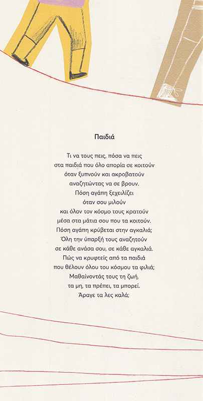 Μία συλλογή με παιδικά ποιήματα-τραγούδια γεμάτα συναισθήματα και εικόνες, για τη σχέση του γονιού με το παιδί.