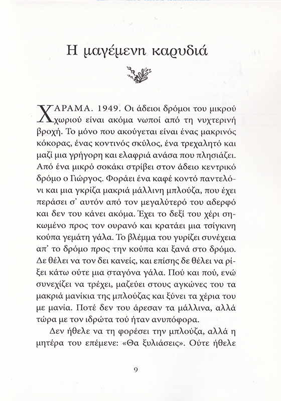 Παλιά, στο ξέφωτο μπροστά απ’ την καρυδιά γίνονταν τα πανηγύρια του χωριού. Τα τελευταία χρόνια, όμως, το δέντρο άλλαξε. Άρχισε να εξαφανίζει ανθρώπους. Κάποιοι έφερναν κάποιους άλλους και το δέντρο τους εξαφάνιζε. “Τους εξαφανίζει και πού τους πάει;” ρωτούσε συχνά τη μητέρα του, που δεν ήθελε να απαντήσει…