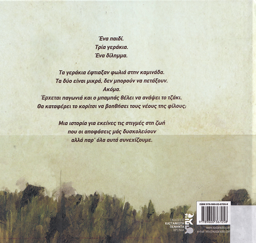 Ένα παιδί. Τρία γεράκια. Ένα δίλημμα. Τα γεράκια έφτιαξαν φωλιά στην καμινάδα. Τα δύο είναι μικρά, δεν μπορούν να πετάξουν. Ακόμα.