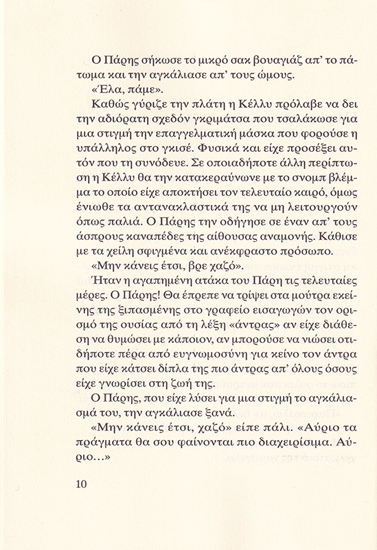 Δεν είχα καμιά διάθεση για διάβασμα, το μυαλό μου ήταν συνέχεια στον Γρηγόρη. Προσπαθούσα να ξεχάσω τον τρόμο που ένιωσα στη σκέψη πως θα μπορούσε να βρισκόταν μπροστά όταν σκίστηκε το φόρεμα. Αυτό το παλιοφόρεμα φταίει και η επιμονή της μάνας μου να το αγοράσουμε, σκεφτόμουν. Με μισεί!